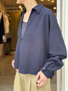 スキッパーデザインのブラウス。