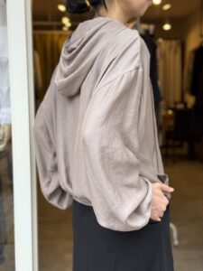 袖に少しボリュームを持たせたシアーパーカー。