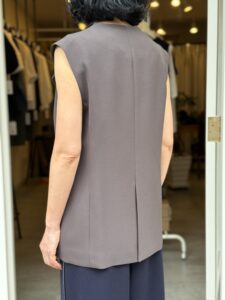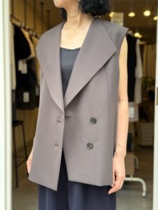 大きめな襟が上品な大人雰囲気のジレ。